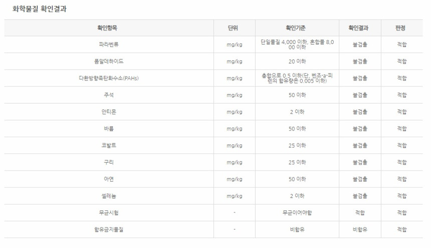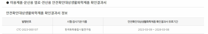 안전확인대상 생활화학제품 확인 결과서